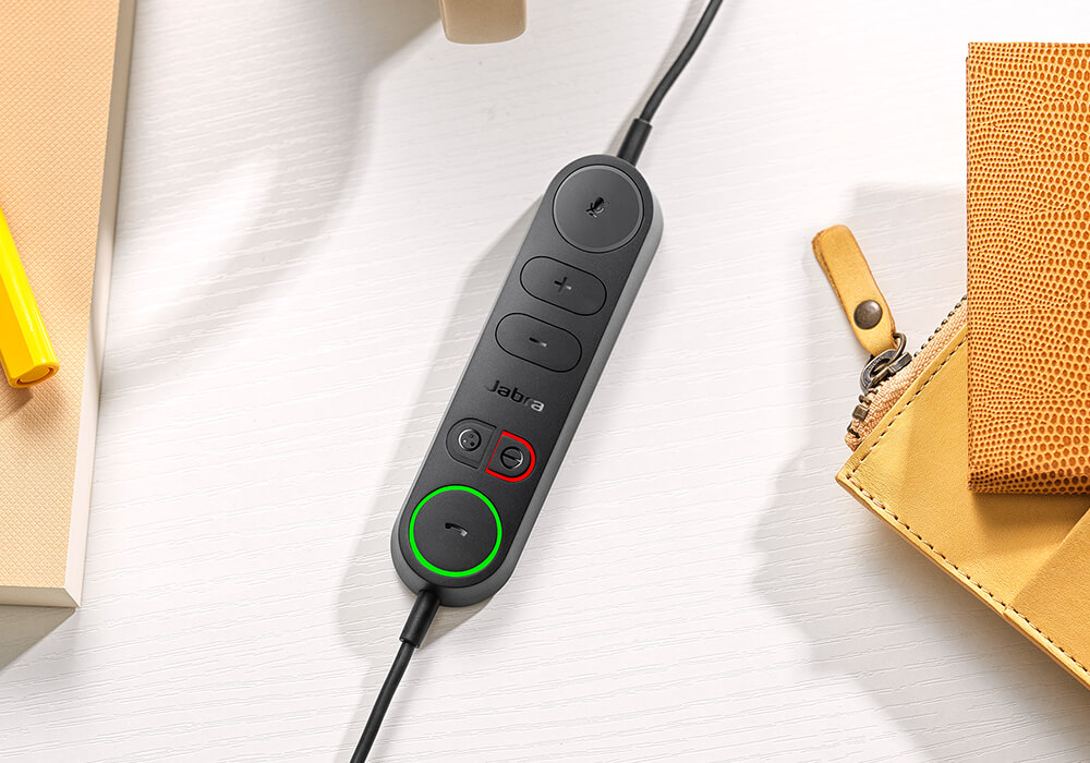 Jabra Engage 40 Inline Link MS Mono USB C/Aを試してみると、はじめにいいな、と思ったのがリモコン。Teams電話はパソコン画面の右下に着信表示されるので、それをマウスのポインタを操作してクリックして受電する必要があります。これに対してEngage 40はヘッドセットの有線にあるボタンを押せば受電できます。話してる途中で咳やくしゃみが出そうになったらミュートボタン。電話を切る時もリモコンで操作できます。マウスクリックよりも物理ボタンの方が正確で素早い操作が可能です。